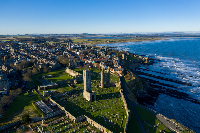 § 社交生活:聖安德魯斯位於丹迪市 (Dundee) 與愛丁堡市 (Edinburgh) 中間,離愛丁堡和格拉斯哥國際機場都相近,搭乘火車約一小時可至愛丁堡市與格拉斯哥市(Glasgow)